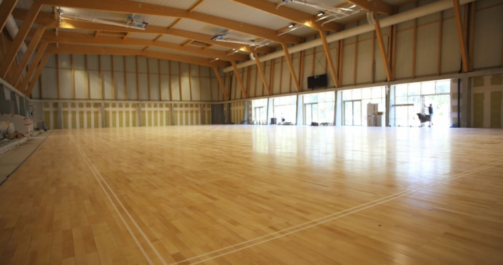 - Sol PVC sportif et parquet démontable (junckers) avec équipements pour basket (paniers), handball (buts,…),